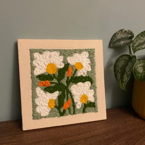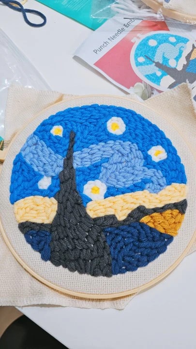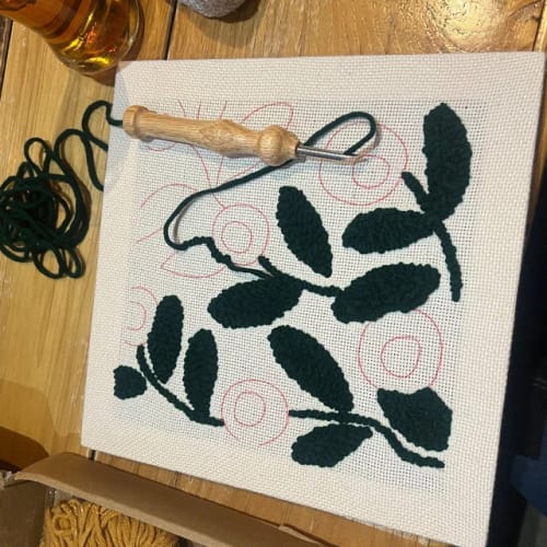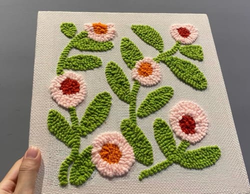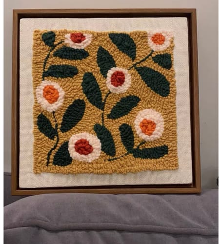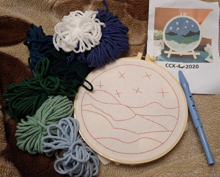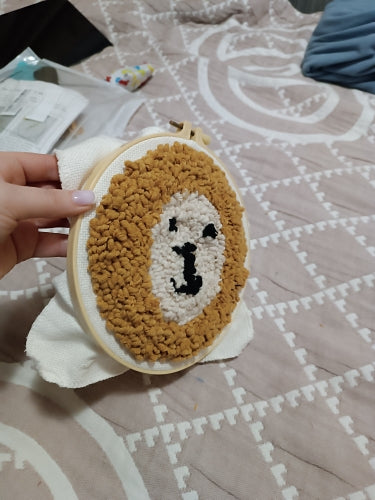 Un cadre en bois pour maintenir la toile pendant la broderie.